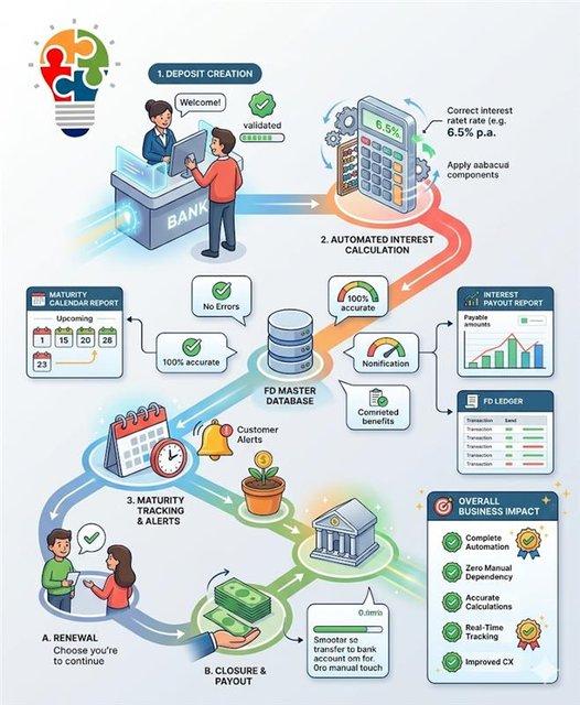 In today’s fast-paced financial environment, managing customer deposits efficiently is critical. Financial institutions with large volumes of Fixed Deposits (FD) and Recurring Deposits (RD), which require accurate tracking, calculation, and reporting. Manual systems often lead to inefficiencies, errors, and poor customer experience.